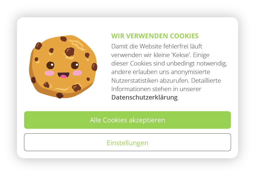 Mit unseren Grafiken können Sie Ihren Cookie-Hinweis selbst gestalten. Eine Übersicht über alle Bilder finden Sie im Bestellformular.